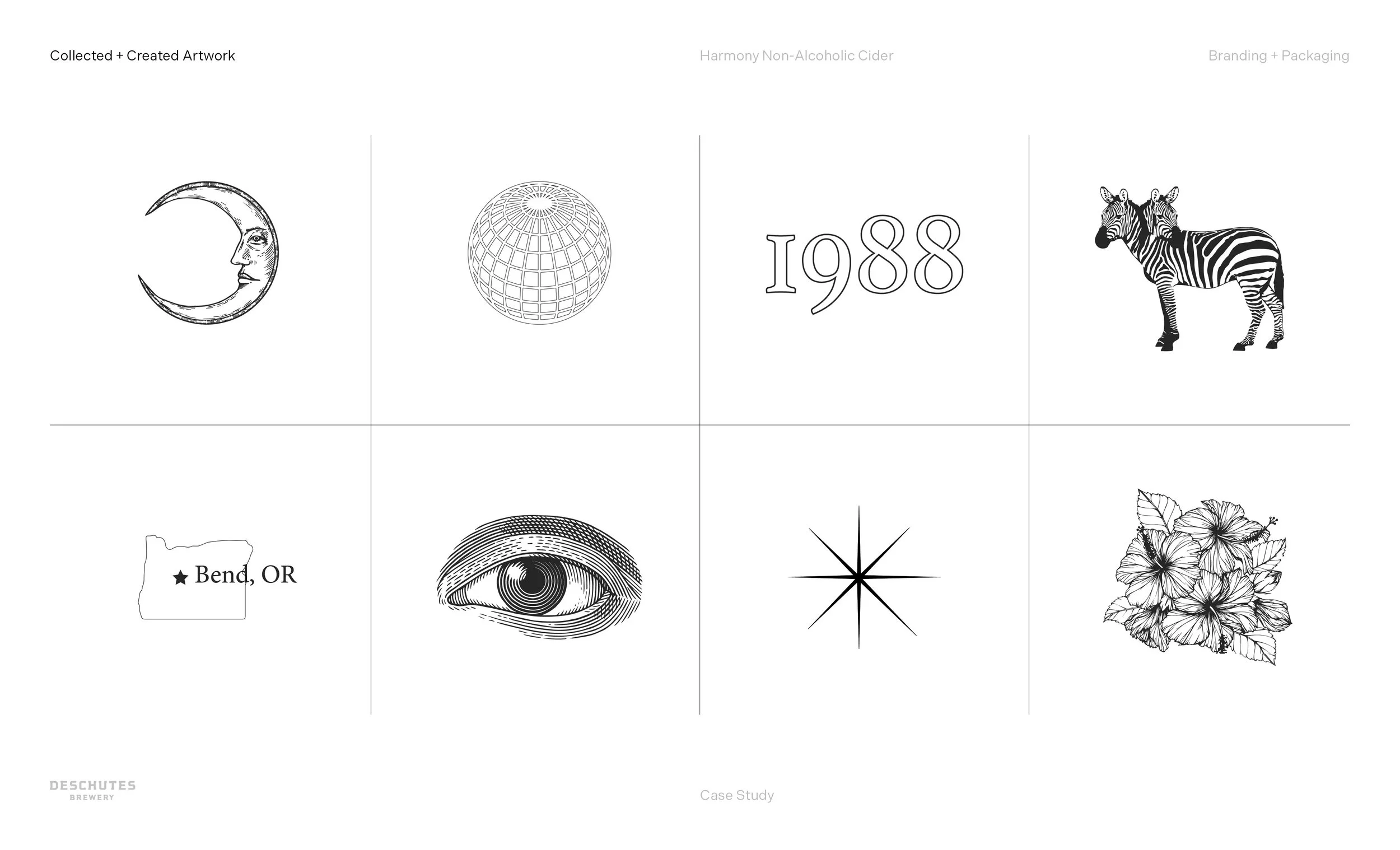 Deschutes Brewery has set out to widen their audience and introduce a new Non-Alcoholic Cider to their brand. I wanted the packaging and flavor choice to feel eclectic. Combinations you’d never think of, yet are still harmonious. I was inspired by a bit of the culture in Oregon as well as the idea of how a cider could now be inclusive for anyone to enjoy.